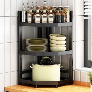 家用靠墙多功能厨房转角放锅三角置物架落地多层锅架收纳三脚架子