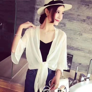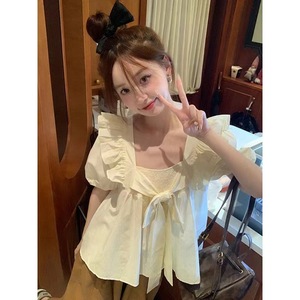 フランスのファッションの甘い蝶結びの半袖のシャツの女性の夏の新型のハスの葉の縁のひもの子供のシャツ