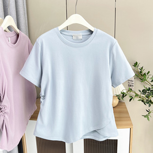 大きいサイズウエスト不規則半袖 100kg ファット MM 夏の新しいスリムカジュアル無地ラウンドネック Tシャツ 7266
