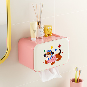 バスルームティッシュボックス、ペーパーボックス、クリームスタイルの漫画壁掛けペーパーボックストイレ高価値パンチフリーペーパータオルホルダー