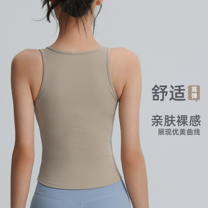 胸パッド付き高強度スポーツトップ、耐衝撃プッシュアップベスト、スリムフィットランニングスポーツフィットネスヨガトップ