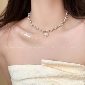 女性用パールネックレス 2025 新しいフラワーネックレス ~ ニッチデザインハイエンド椿鎖骨チェーンアクセサリー