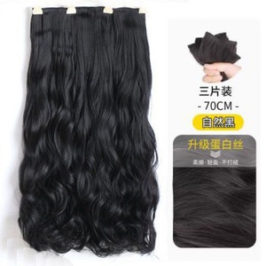 巻き毛用の厚みのあるウィッグ、ふわふわの3ピースウィッグ、目に見えないヘアエクステンション、女性の長い髪用のポニーテールウィッグ