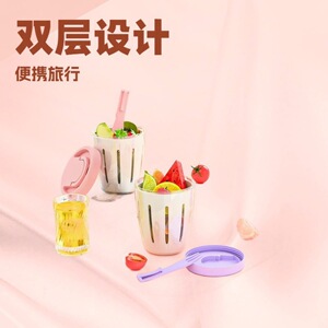 Ins風フルーツカップ朝食サラダカップ外にピクニックフォーク付き二重水切りカップ多目的フルーツカップ