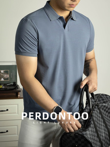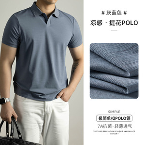 [7A 抗菌エンボスジャカードテクスチャー] ライトラグジュアリービジネスカジュアル無地メンズポロカラー半袖夏軽量抗シワ