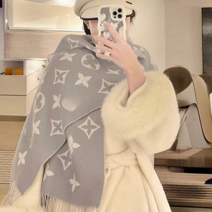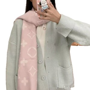 秋と冬のウールスカーフ女性のタッセル老眼レターショール両面カシミヤローズピンクライトグレースカーフ暖かい