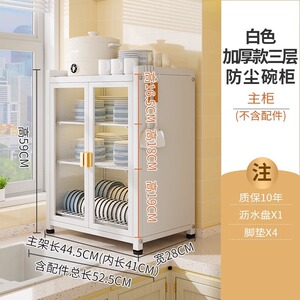 【白色】双层上翻防尘碗柜 大号(全套配件)
