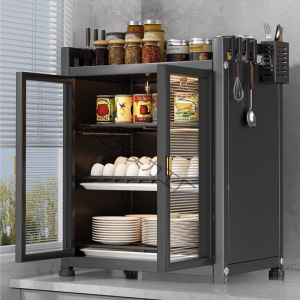 【黑色】双层上翻防尘碗柜 加大号(全套配件)