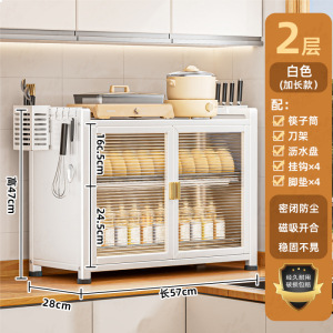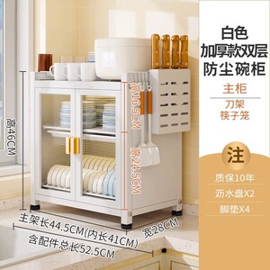 【白色】双层上翻防尘碗柜 加大号(全套配件)