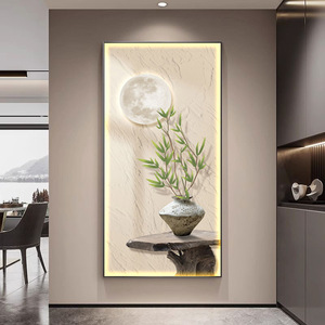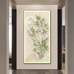 LEDライト付き絵画、玄関ホール装飾絵画、竹廊下通路吊り絵画、シンプルモダンな竹の平和壁画