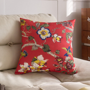 新中国式抱き枕カバー花鳥プリント綿麻風紅木ソファー装飾枕ソフトバッククッション客間抱き枕