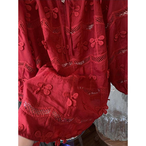 高級フレンチレッド刺繍リボンレースワンラインカラー半袖シャツベビードールファッショナブルなルーズトップ
