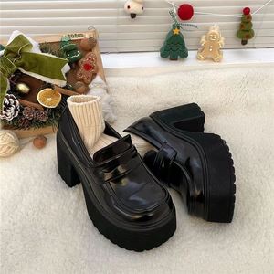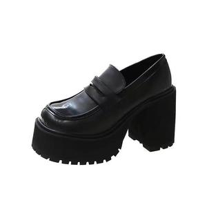 乐福鞋2025年夏季新款百搭厚底粗跟黑色圆头防水台小皮鞋女高跟鞋