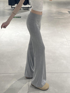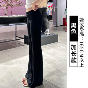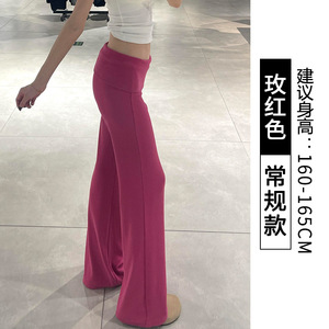 アメリカ風ウエストカットマイクロフレアパンツ レディース 春秋 ローウエスト セクシー 細見え ドレープ感 マキシ丈 マキシパンツ ヨガ スポーツパンツ