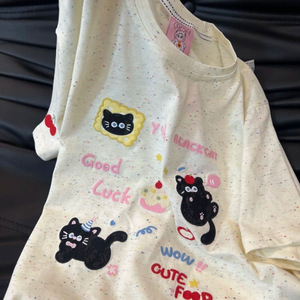 可爱减龄重工刺绣小猫短袖t恤女夏2025新款设计感小众学生上衣ins