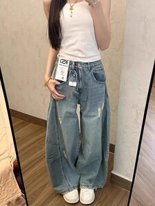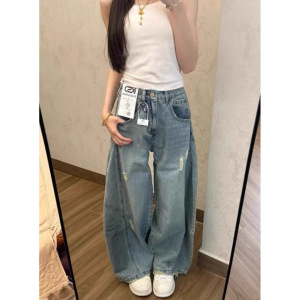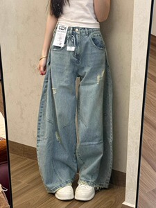 アメリカンレトロワイドレッグシミタージーンズレディース薄手2025夏デザインウォッシュルーズドレープバナナパンツ