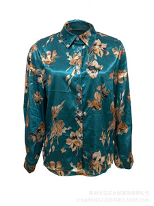 [標準コード] ゴールデンロータスプリントシャツ春夏ラペル気質サテンスリム長袖プロフェッショナルシャツ