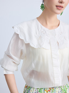 [Zhihetang] 2025 夏白いドールカラーシャツレディースゆったり長袖トップス 0210 多用途