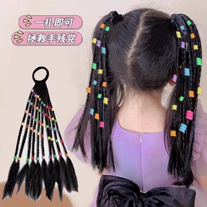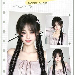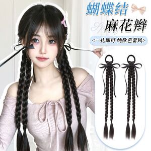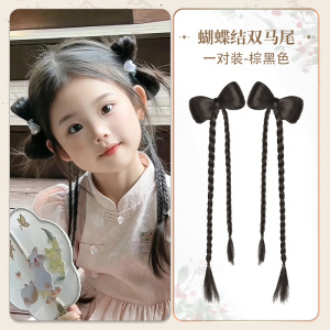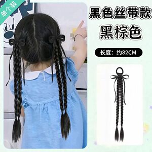 女性用ウィッグ三つ編み、中国風子供用三つ編み、ネット有名人バレエ風リボンボクシング三つ編みウィッグ、ダブルポニーテール