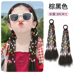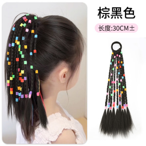 子供用リボンポニーテール二重三つ編み【ブラウン・ブラック】1組