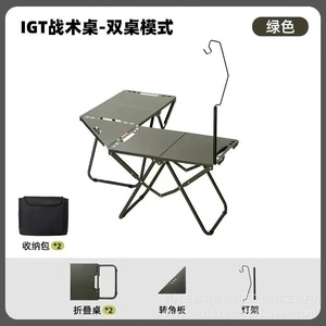 炭素鋼折りたたみ式タクティカルテーブル - グリーンダブルテーブル + アダプタープレート + キャンプライトスタンド