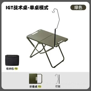 炭素鋼折りたたみ式タクティカルテーブル - グリーンシングルテーブル + キャンプライトスタンド