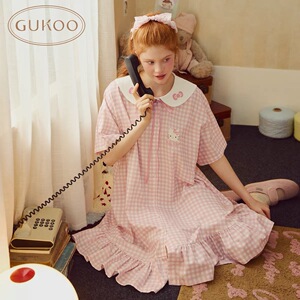 源工場の果物の眠りのスカートの夏の海軍の襟のピンクの白いシリーズのkittyの新型の甘い美人の家の服の眠りのスカート