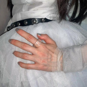 韓国風インシンプルラブジルコン樹脂リング多用途甘いデザインニッチデザインクリア人差し指リング