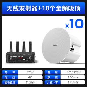 【ワイヤレスモデル】ワイヤレス送信ホスト+ワイヤレスサブウーファーフルレンジスピーカー10個