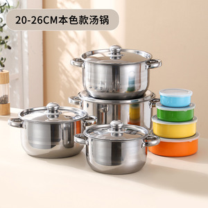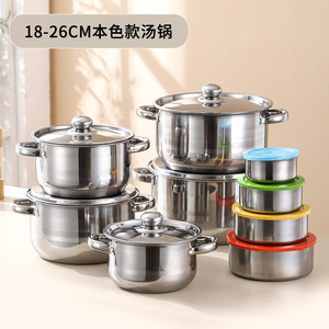メーカーの卸売りセットの鍋の底のステンレスの金色の双耳の10セットのスープの鍋の調理器具のセットの鍋のクロスボーダーの輸出