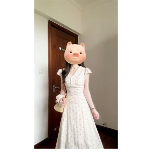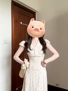 夏のvネックは腰を収めてやせているレースの気質のワンピースの女性学院の風は腰を収めてやせている花の休暇の王女のスカートを現します。