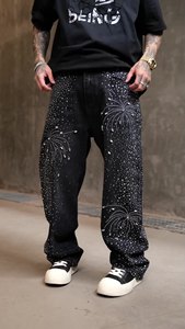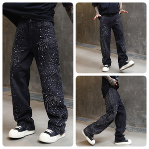 メンズ スターリースカイ ホットフィックス ラインストーン ウォッシュド ブラック ジーンズ