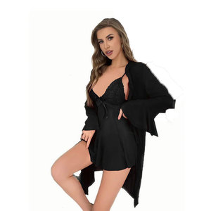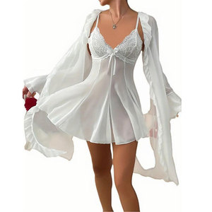 クロスボーダーアマゾンレースナイトガウンレース純粋な欲望サスペンダースカートメッシュアウターローブホームウェアセットパジャマ女性軽量