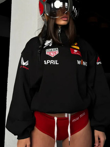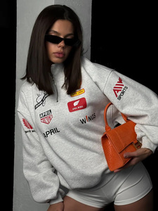 長袖ポロヨーロッパとアメリカのスウェットシャツアメリカンスポーツスタイルプラスベルベット厚みのあるルーズ秋冬コートラペルハーフジッパートップ