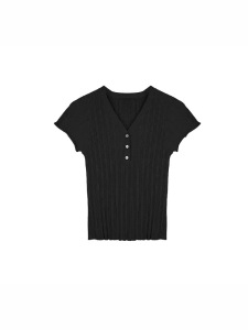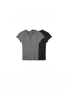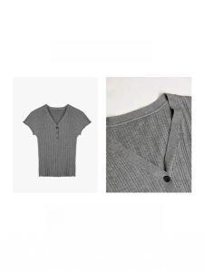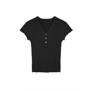 人気の2025春夏肌に優しく快適な袖口カール気質縦縞ピットストリップ半袖セーターニットトップ