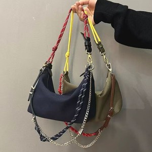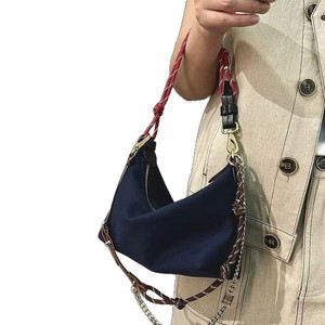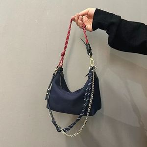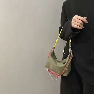 防水キャンバスレトロランチボックスバッグコントラストカラーサーフロープチェーンハンドバッグレザー脇の下バッグシングルショルダークロスボディバッグ