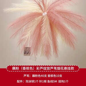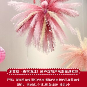 グラデーションピンク(シャンパンワインレッド)色の葦咲く葦花火吊り下げスタイル