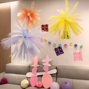 ウェディングルーム結婚式シミュレーションリード花火羽孔雀草柱ドレッシングローブ写真背景装飾セットリビングルーム
