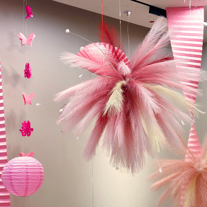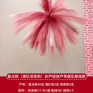 バーガンディ(グラデーションピンク)色の葦咲く葦花火吊り下げ風