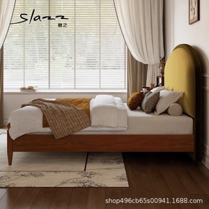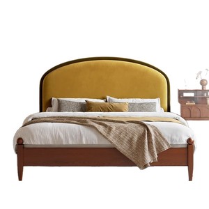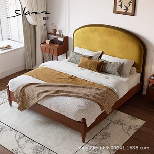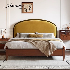 ライトラグジュアリーフレンチレトロラインベッド、アンティークスタイルマスターベッドルーム無垢材大型ベッド、シンプルな小さなアパートファブリックソフトパッケージダブルベッド