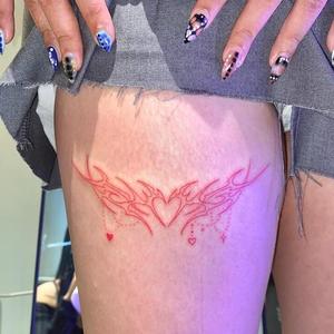 サキュバスタトゥーステッカー腰腹部足首脚防水長持ち黒桃タトゥーデビルハート