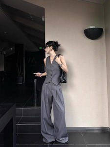ファッショナブルなロイヤルシスタースーツベストスーツ2025夏ツーピースグレーノースリーブベストトップドレープワイドレッグパンツ