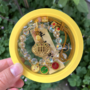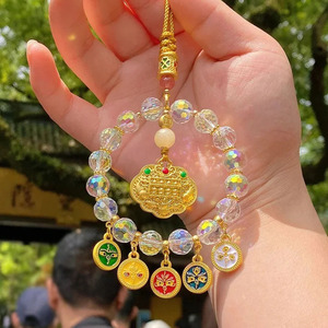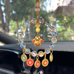 Lingyin の同じスタイルの 5 方向の富の神車吊り下げカラフルなクリスタルそろばんロック祝福バッグハイエンド車の装飾安全な車のペンダントドロップシッピング