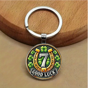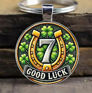 国境を越えた新製品幸運の四つ葉のクローバーキーホルダー - ゴールデンホースシューデザイン