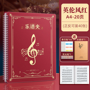 【英伦风红】40页/正反可放80张 送音乐夹子+荧光笔+乐谱本+索引贴