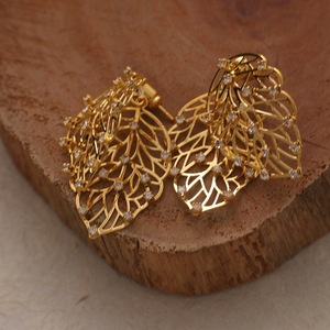 春夏人気の手作り精密仕上げフルダイヤモンドフォレストリーフピアス