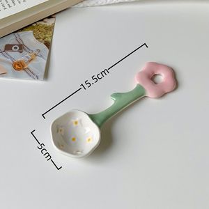 インス風の下絵付けセラミックスプーン、見た目もかわいい、家庭用長柄スプーン、デザートスプーン、ヨーグルトオートミールスプーン