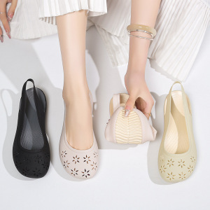 HY 春と夏のクリスタルゼリーサンダル女性のソフトソールマザーズシューズ防水シングルホールレインシューズフラットトゥビーチシューズ