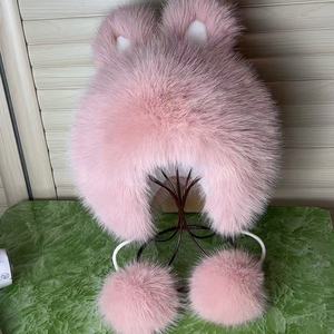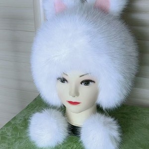 2025 両面ぬいぐるみ新しい模造毛皮かわいい立ち耳帽子長毛暖かい韓国語版肥厚耳保護雷峰