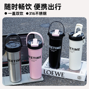 2025 新しい魔法瓶カップガールズコーヒーカップストローカップダブルドリンクカップポータブル大容量車の水カップ